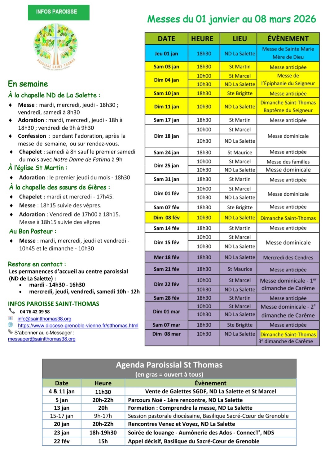 Les mardis , 27 janvier et 3 février ainsi que le dimanche 8 février (Dimanche de Saint Thomas)